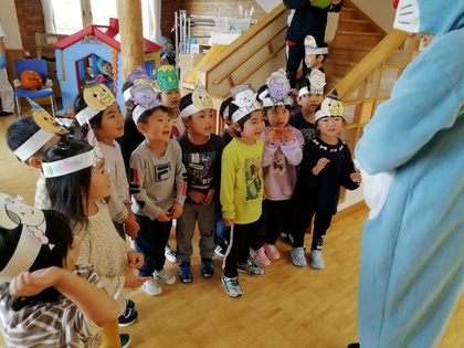 ハロウィンには「トリック オア トリート!」と言いながら園内を歩きお菓子をもらいました。