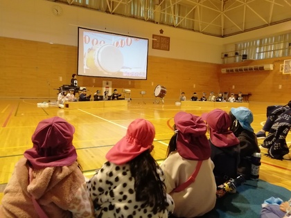 赤川小学校の学習発表会に行ってきました。修了児の活躍を真剣に見ていました。小学生になったらこんなことするんだな…と就学への期待が膨らむひまわりぐみさんでした。