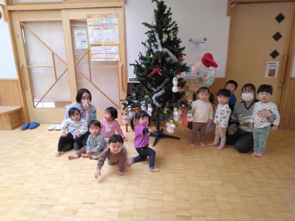 自分で作ったクリスマス飾りをツリーに飾りつけしました。クリスマスにはおりこうなちゅうりっぷぐみさんにもサンタさんが来てくれました。